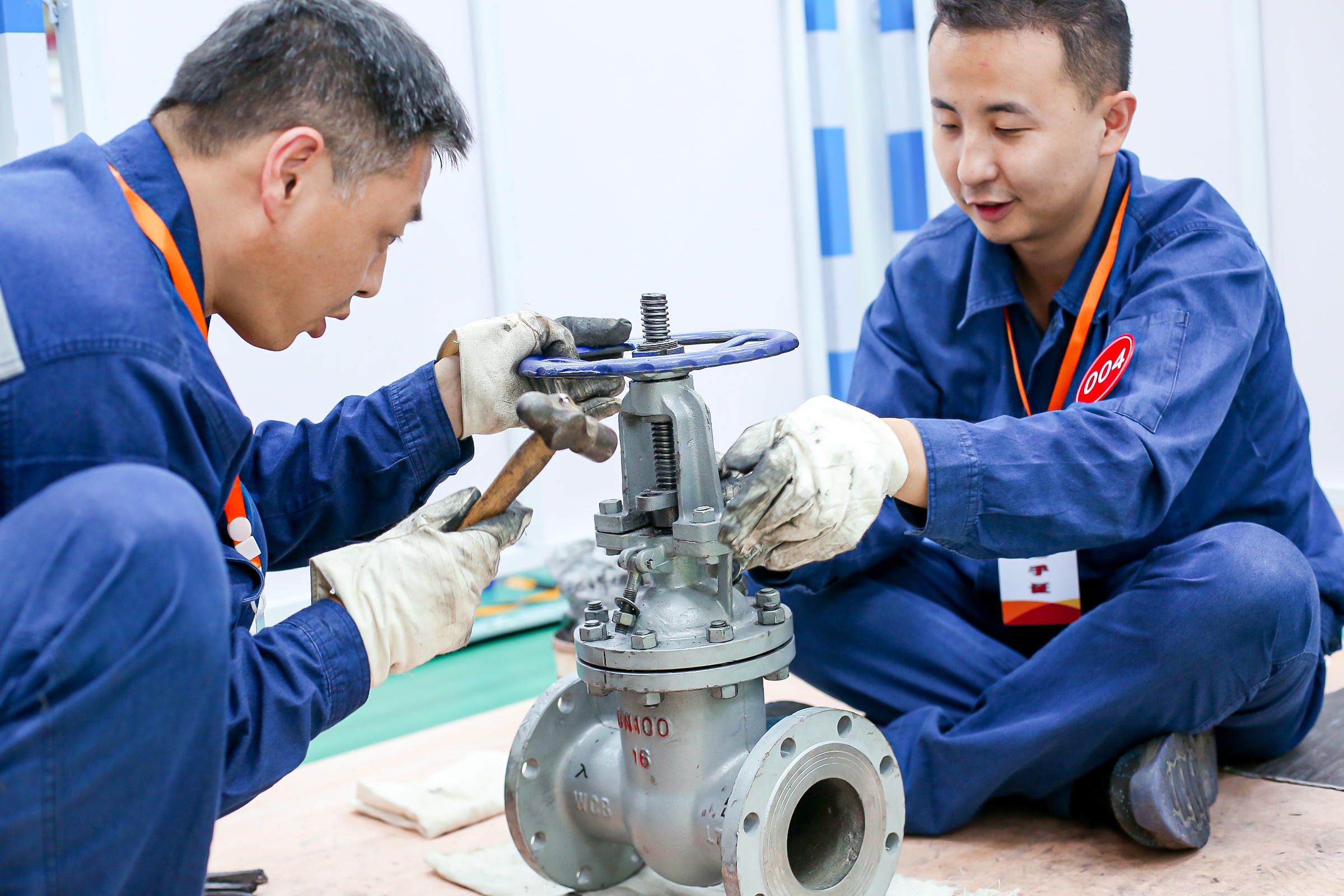 開幕式后的閥門檢修實(shí)操比賽中,選手拿出看家本領(lǐng),從工器具擺放、檢修報(bào)告的記錄、閥門的解體到零部件的清理回裝有序進(jìn)行,對(duì)閥芯閥座密封面的研磨更是細(xì)致謹(jǐn)慎,并運(yùn)用元寶鐵、百分表測(cè)量閥桿彎曲度,細(xì)致調(diào)整盤根填料的緊固程度,整個(gè)過程緊張有序、忙而不亂,展現(xiàn)出良好的基本功和技術(shù)水平。