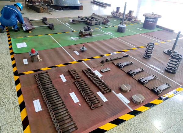 針對(duì)“#5機(jī)高背壓轉(zhuǎn)子更換”現(xiàn)場(chǎng)場(chǎng)地廣、設(shè)備多,零配件繁瑣,區(qū)域內(nèi)檢修項(xiàng)目多、交叉作業(yè)多的情況,項(xiàng)目部提出了現(xiàn)場(chǎng)分區(qū)作業(yè),設(shè)備、配件定置化擺放,打造“標(biāo)準(zhǔn)化”檢修現(xiàn)場(chǎng)的目標(biāo)。