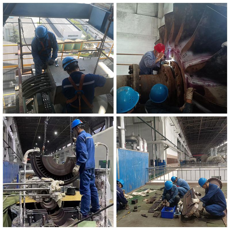 渭河發(fā)電#3機組C級檢修現(xiàn)場一片熱火朝天的景象,檢修人員主動放棄中秋假期參與到C修當(dāng)中。汽機房各種交叉作業(yè)同時進(jìn)行,大錘的叮當(dāng)聲、行車起吊的哨子聲、銅棒的敲擊聲此起彼伏。乙小機大修的清掃、測量工作有序展開,檢修人員對小機轉(zhuǎn)子和葉輪進(jìn)行清掃,細(xì)心地粘貼白色膠布用來測量汽封間隙,確保檢修質(zhì)量精益求精。