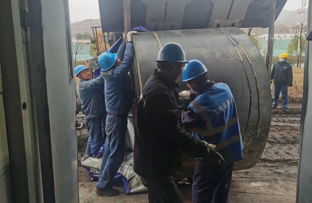 皮帶更換現(xiàn)場(chǎng),檢修人員一起拉著200米長(zhǎng)的皮帶,使出渾身力氣,共同喊著號(hào)子,咬緊牙關(guān)抓緊繩索一步一步前行,沉重的皮帶一點(diǎn)點(diǎn)慢慢向前移動(dòng),黑色“長(zhǎng)龍”終于成功“趴”在了皮帶支架上。