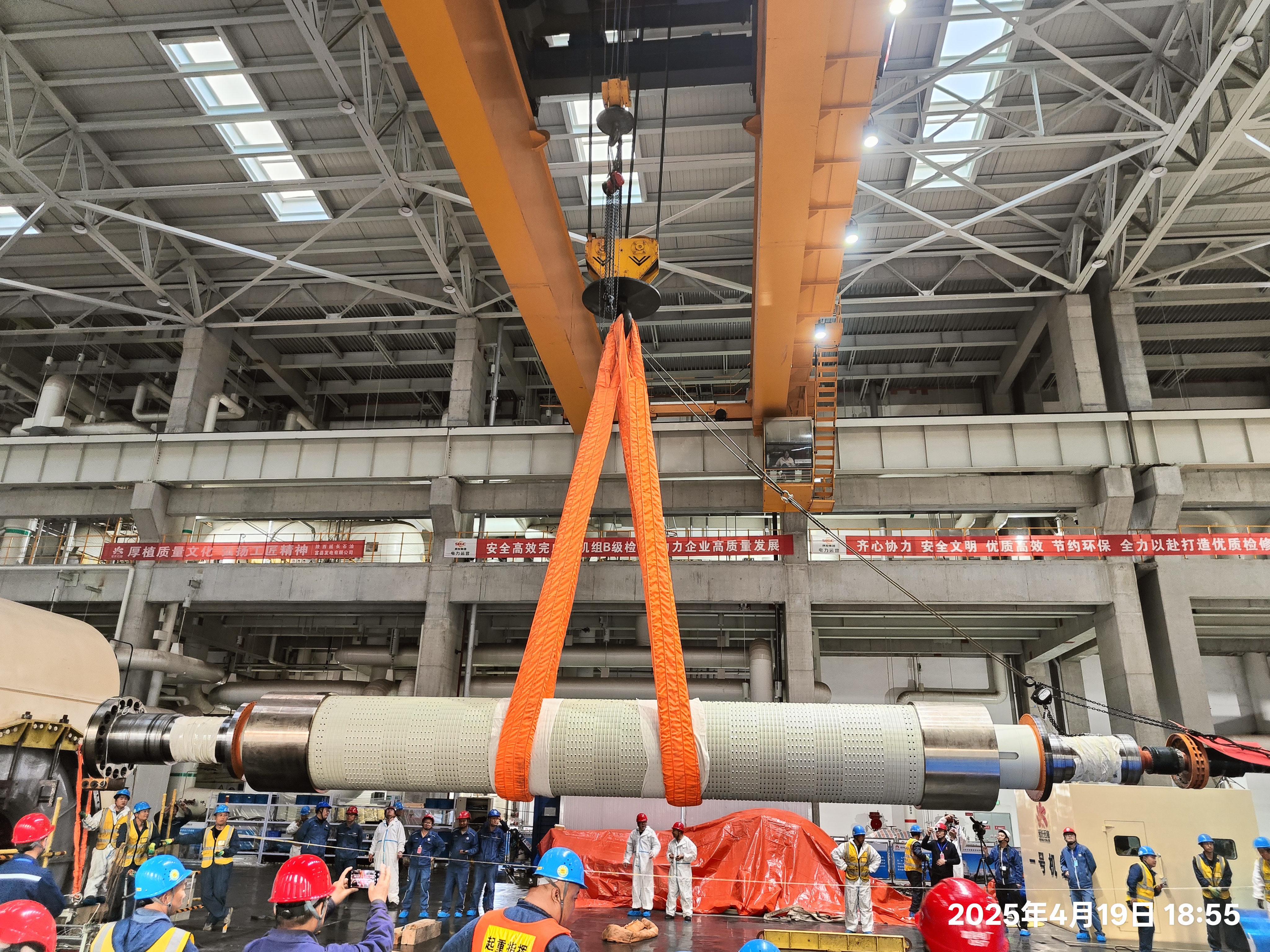 19時(shí)15分,暮色漸濃,經(jīng)過近11個(gè)小時(shí)連續(xù)奮戰(zhàn),重104噸,全長15.7米的發(fā)電機(jī)轉(zhuǎn)子完美移出定子內(nèi)膛,平穩(wěn)落位于專用支架。這一刻,現(xiàn)場(chǎng)響起經(jīng)久不息的掌聲。