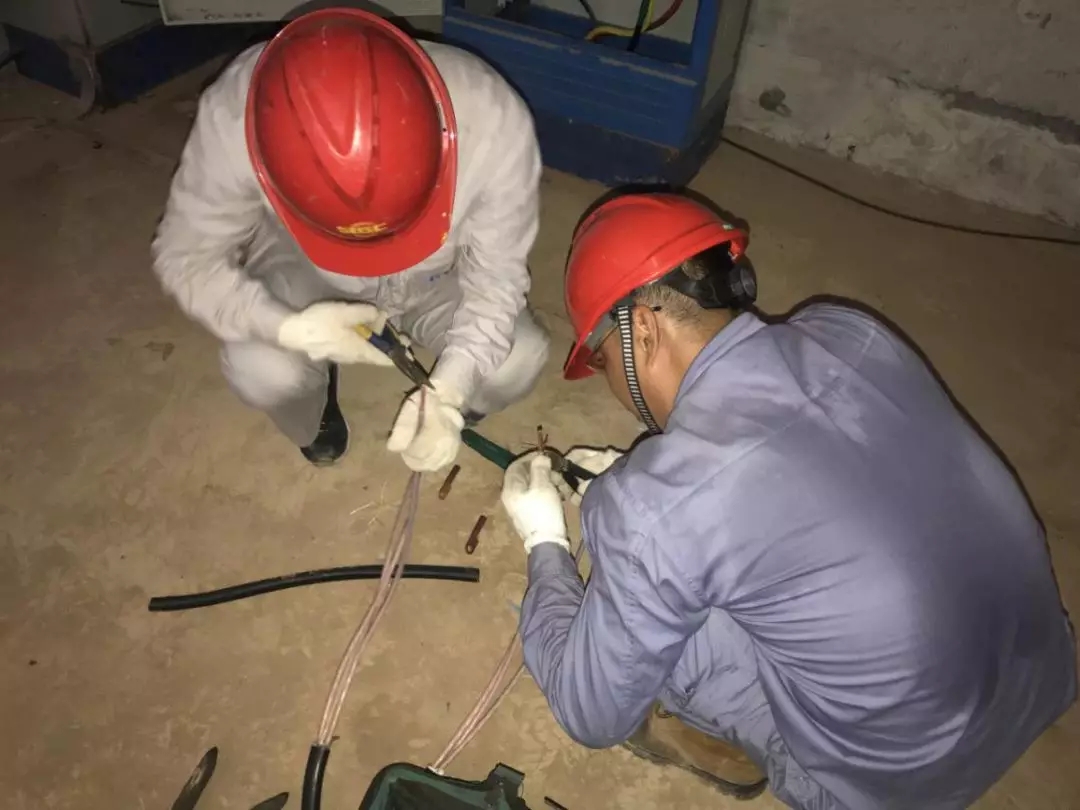 10:00,200米電纜鋪設(shè)到位,班組成員分為兩組,從電纜兩端同時(shí)開(kāi)始作業(yè),割開(kāi)絕緣、壓接銅鼻子、確認(rèn)相序、開(kāi)關(guān)端子接線緊固、搖電纜絕緣、開(kāi)關(guān)送電,一氣呵成。