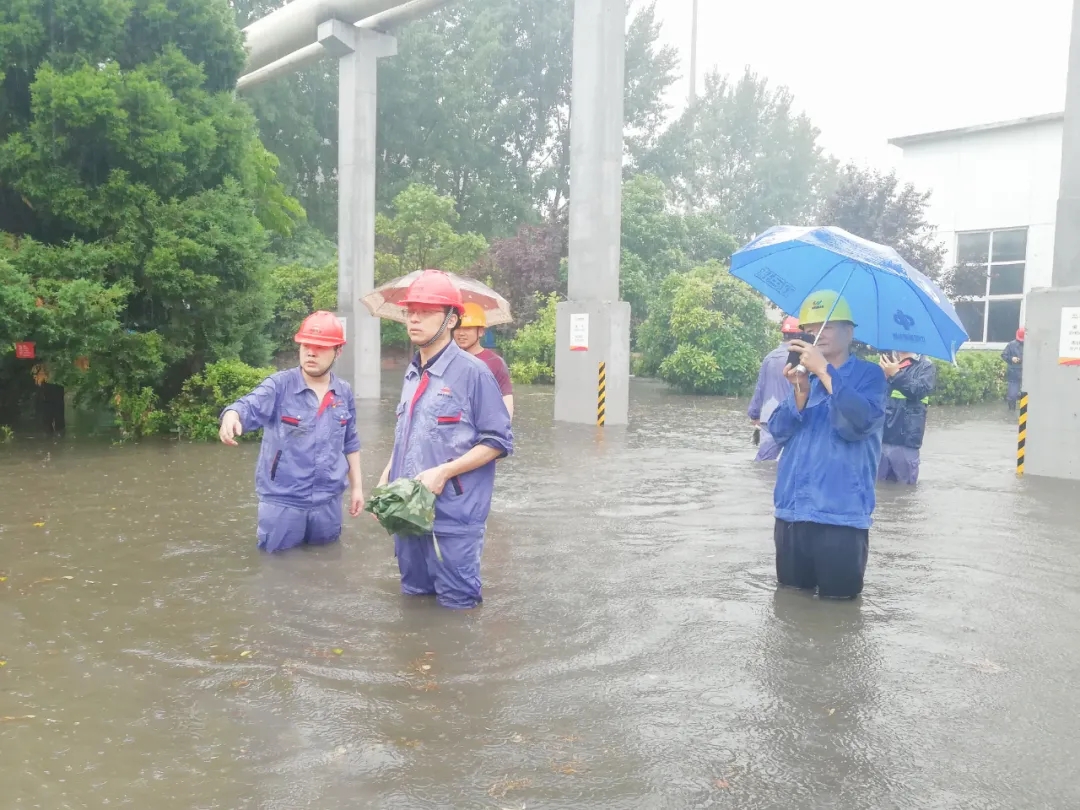瓢潑大雨中,燃輸區(qū)域瞬間水深超過一米,項目部應(yīng)急小組成員來不及換上雨衣雨鞋,就跳入齊腰深的積水中,排查險情,疏通水道。